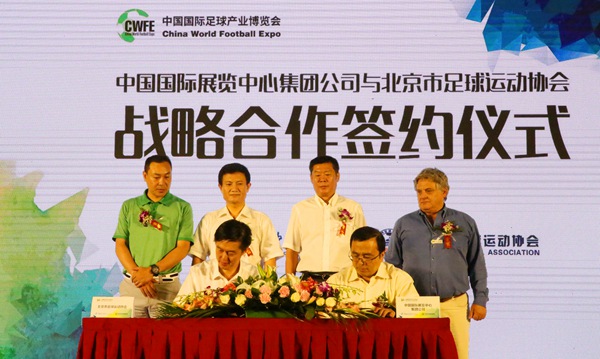 8月20日下午,第二届中国国际足球产业博览会暨中国国际展览中心集团公司与北京市足球运动协会战略合作签约仪式在中国国际展览中心综合服务楼会议室隆重召开。中国足球协会、中超联赛有限责任公司、北京中赫国安足球俱乐部、北京人和足球俱乐部、北京控股足球俱乐部、北京理工足球俱乐部、北京北控凤凰足球俱乐部、北京懂球帝科技有限公司等代表应邀出席了发布会。此外,发布会还邀请了国内外30多家新闻媒体、报刊网络记者以及相关单位的领导和代表出席。本次会议由北京电视台主持人魏翊东主持。